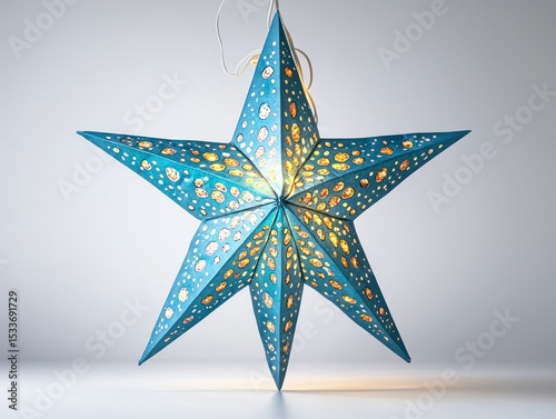 © irawan710, Obraz premium Teal star lantern, light shining through