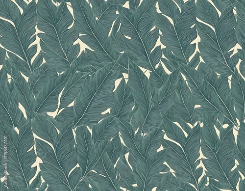 © Brother Stocks, Obraz premium Teal Tropical Leaves Pattern Background Design