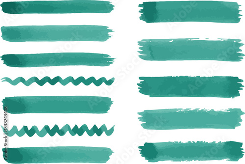 Obraz premium Teal Watercolor Brush Strokes & Underlines Set