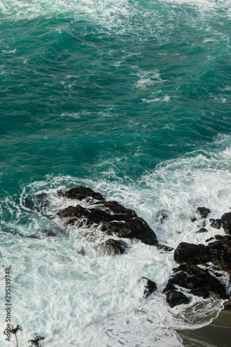 Obraz premium Teal Waters Crash onto Rocks in Pacific