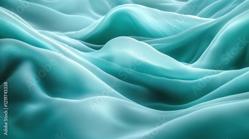 © mlangsen, Obraz premium Teal wavy abstract fabric.