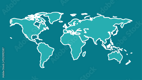 © MdMaynul, Obraz premium Teal world map illustration white outline on teal background geography design