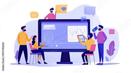 Fototapeta premium Team Analyzing Data on a Large Monitor and Tablet