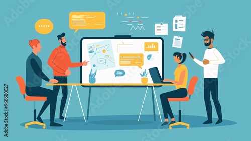 © Beer AI, Fototapeta premium Team Brainstorming and Planning on Whiteboard in Office