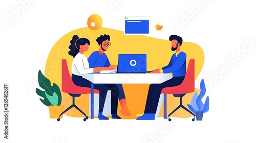 Obraz premium Team Brainstorming Session: Vibrant Digital Illustration of Collaborative...