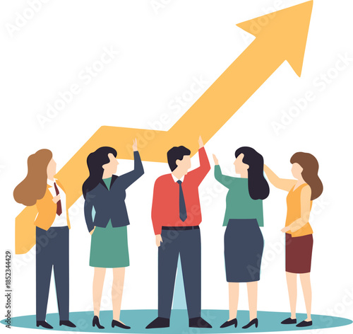 © anamull2004, Obraz premium Team celebrating success with an upward trending arrow representing growth