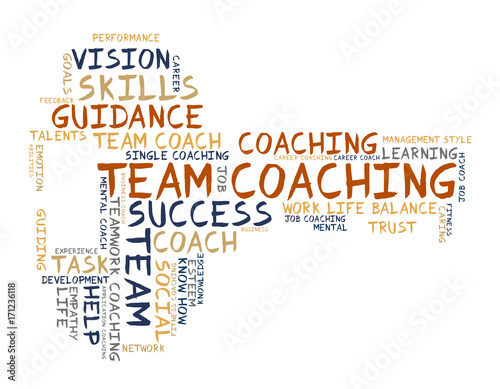 © macgyverhh, Obraz premium Team Coaching word cloud shaped as a key