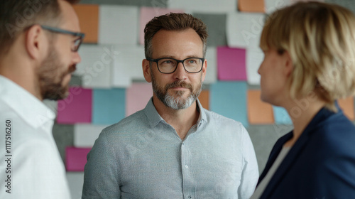 © pimnada, Obraz premium Team discussing ideas in modern office setting