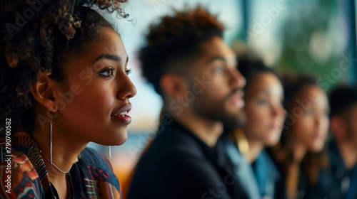 © Sol Revolver Group, Obraz premium Team Interaction Hispanic Professional Sharing Insights During a Multicultural Team Discussion