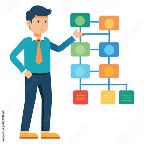 © PrimeLayouts, Obraz premium Team leader pointing at flowchart