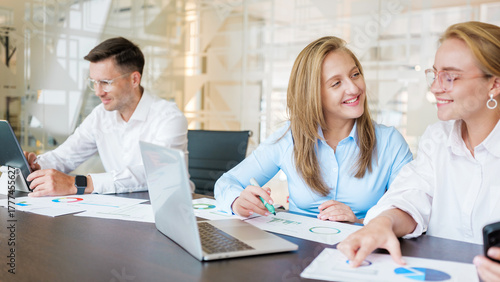 Fototapeta premium Team members discussing project data in office
