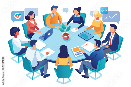 © Iftikhar alam, Obraz premium Team members engage in a productive discussion while sitting in a circle in a modern conference room during a collaborative planning session