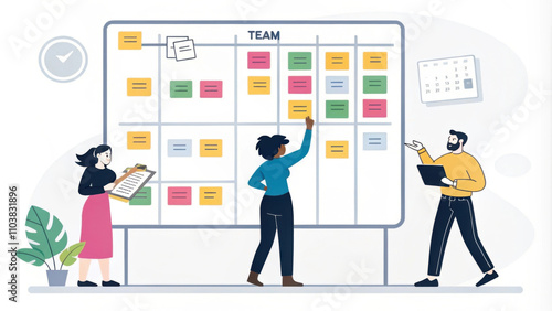 Fototapeta premium Team members organizing tasks on digital board