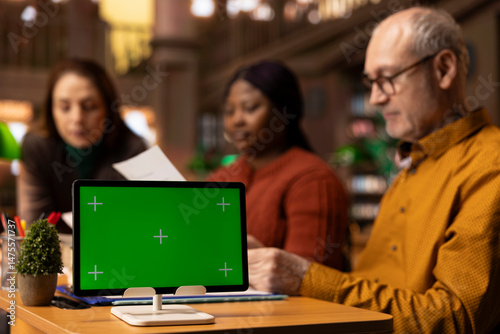 © DC Studio, Fototapeta premium Team of calm and composed mature people studying next to copy space in a campus library, education and wisdom grows stronger with age. Older students group finishing their studies.