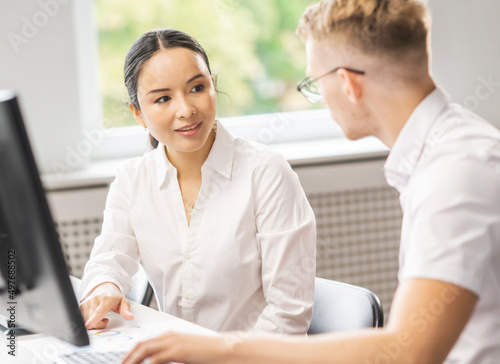 Fototapeta premium Team of professional support staff working in the office. Colleagues in the...