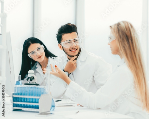 © yurolaitsalbert, Obraz premium team of scientists discussing something at the Desk