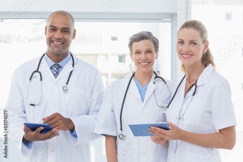 Fototapeta premium Team of smiling doctors working on their files