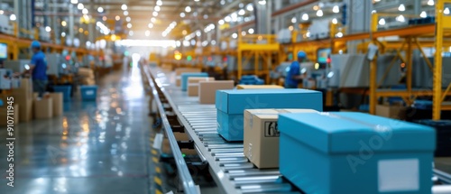 © Starkreal, Naklejka premium Team of Workers Collaborating on Enhancements for Jigsaw Puzzle Production Line