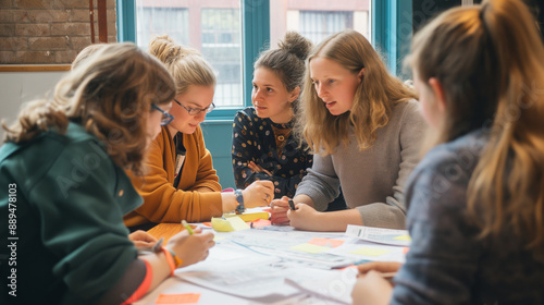 © Laura, Fototapeta premium Team participating in a hands-on activity or workshop, interactive and involved, upper third copy space