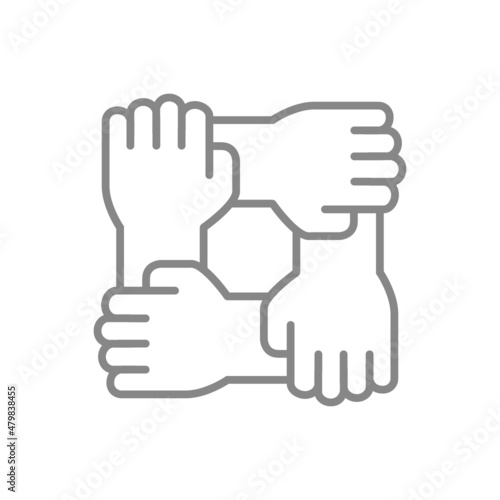 © Lifeking, Obraz premium Team work line icon. Four hands, togetherness, unity symbol