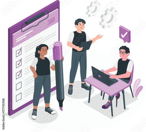 Fototapeta premium Team working on a checklist and project plan teamwork collaboration