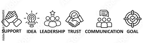 © Sien, Obraz premium Teamwork banner web icon vector illustration concept with icon of support,idea,leadership,trust,communication,goal