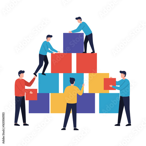 © GolamKibria, Obraz premium Teamwork building a structure together, collaborating for success in business, isolated on white background