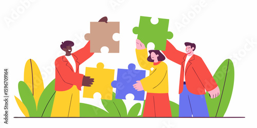 Fototapeta premium Teamwork collaboration puzzle pieces connecting people success strategy...