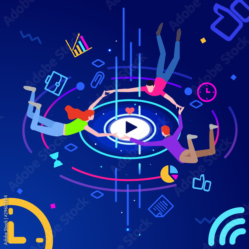 © Bahauaddinbek, Fototapeta premium Teamwork concept banner. Can use for web banner, hero images. Concept illustration of business analytics, information gathering, data analysis, team game, market research, online research