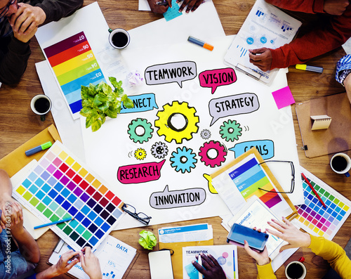 © Rawpixel.com, Fototapeta premium Teamwork Connect Strategy Vision Together Gear Concept