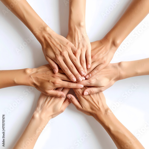 © ThiraWat, Fototapeta premium Teamwork hands together collaboration unity support partnership concept