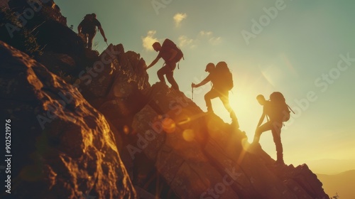 Fototapeta premium Teamwork, helping the team climb the mountain, helping each other to achieve...