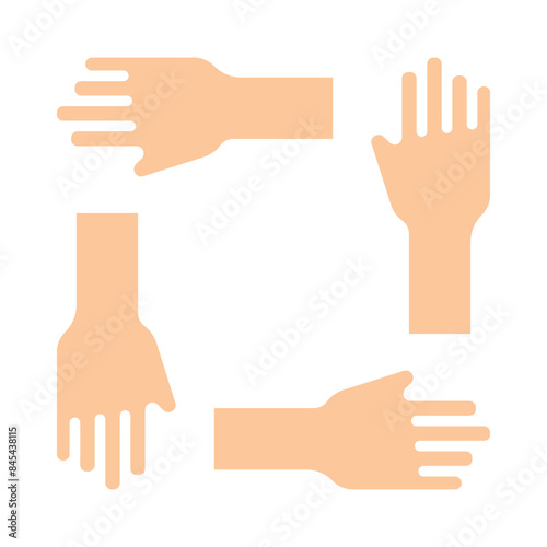 © Кирилл Макаров, Obraz premium Teamwork icon. Four hands in a square, collaboration, unity, cooperation, support, teamwork, working together.