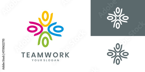 Obraz premium Teamwork logo design with abstract human figure