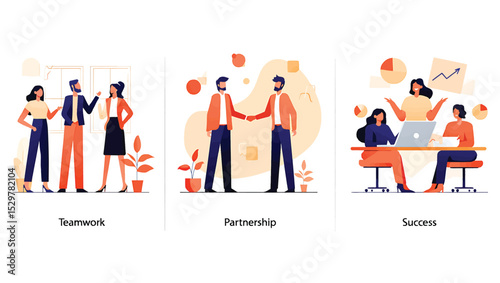 Fototapeta premium Teamwork, Partnership, and Success Business Collaboration Vector Illustrations