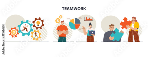 Obraz premium Teamwork set. Office characters collaborating for additional business