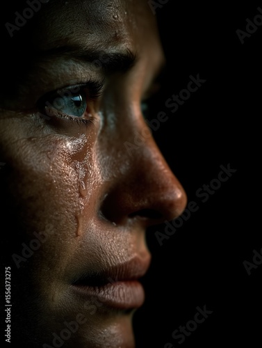 Obraz premium Tears Rolling Down Face in Dramatic Lighting