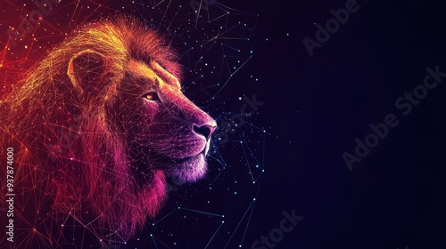 © Stock Avenue, Naklejka premium Tech concept lion silhouette formed by interconnected nodes