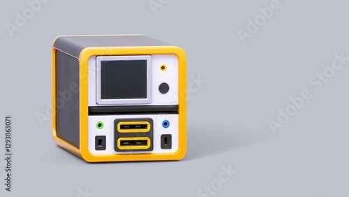 Fototapeta premium tech education with AI and e-learning platforms 3D concept. Compact device with screen and multiple USB ports, featuring a modern design and vibrant colors.