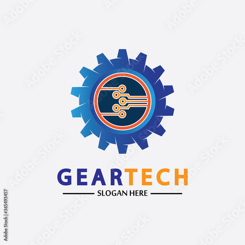 © Sunar, Fototapeta premium Tech gear logo vector design template. Technology Logo Template Design Vector, Emblem, Design Concept, Creative Symbol, Icon