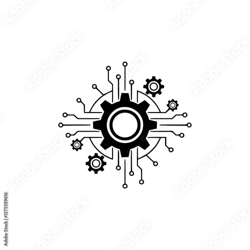 Fototapeta premium Tech Gears & Circuitry Icon - Minimalist Black & White Design