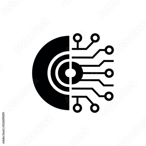 © Habib, Obraz premium Tech half circle vector logo with circuit lines
