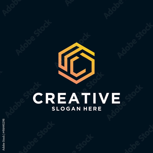 Fototapeta premium tech hexagonal alphabet logo design initial logo design hexagon simple...