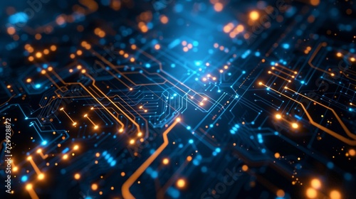 Obraz premium Tech Innovation: Circuit board patterns and digital elements symbolize...