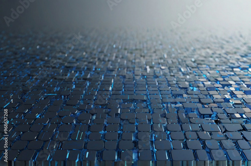 © HJ studio, Fototapeta premium Tech-inspired blue pixel art, crisp and modern, on white background, emphasizing depth and innovation.