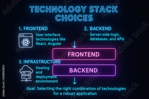 Obraz premium Tech Stack Layers Infographic with Software Architecture and Component Hierarchy for Development Planning