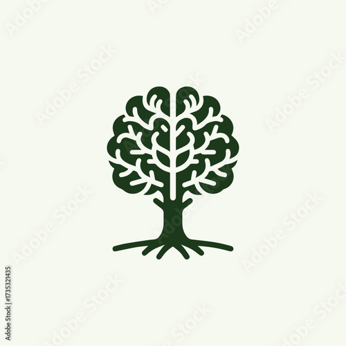 Obraz premium Tech Tree Brain Logo