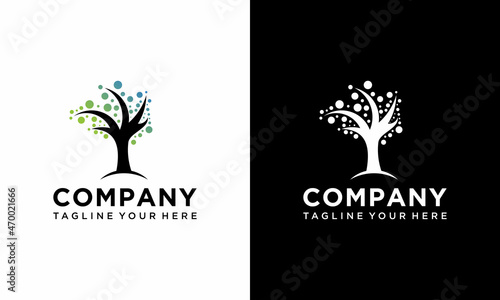 Obraz premium tech tree electrical circuit digital logo vector template on a black and white background.