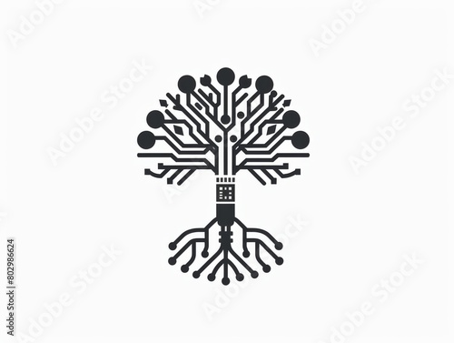 © Aydin, Naklejka premium Tech Tree Logo: Minimalist Circuit Board Design