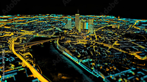 Obraz premium Technical aerial visual, 3D LiDAR GIS aerial map satellite scan model...